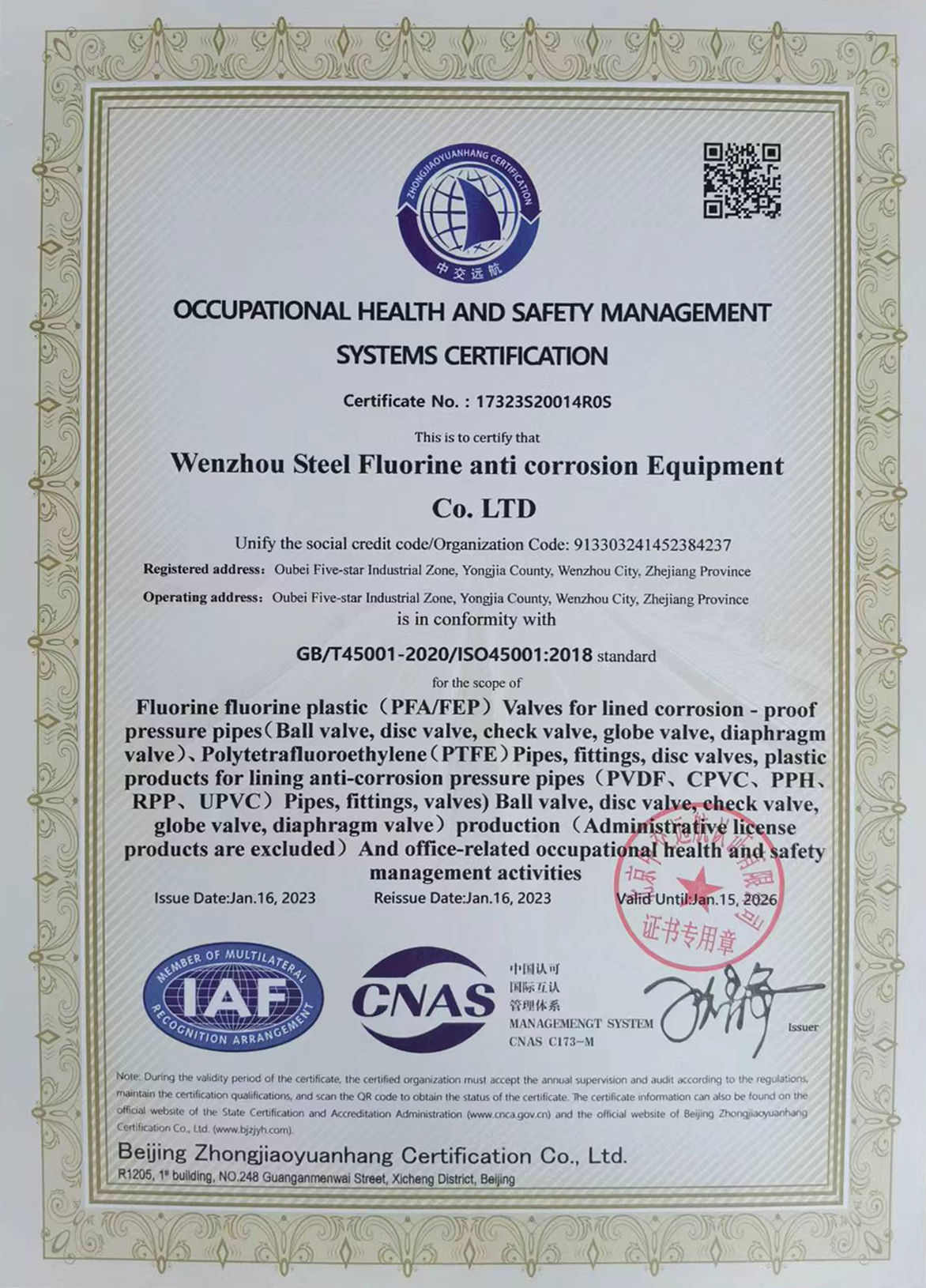 職業(yè)健康安全管理體系認(rèn)證證書(shū) |